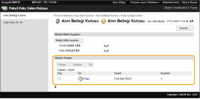 ![]() | Fax Gelen Kutusu’nda geçici olarak depolanmış faksları veya I-faksları yazdırmak, göndermek veya silmek için Uzak UI'yi kullanabilirsiniz. |