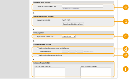 [Universal Print Ayarları] etkinse, Universal Print işlerinin ilişkili olduğu kullanıcının Microsoft 365 hesabında kullanılan e-posta adresini veya telefon numarasını girebilirsiniz.