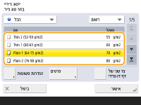 <אישור>. רישום גודל נייר וסוג הנייר הנמצאים בשימוש תכוף במגש הרב-תכליתי