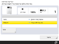 | | ניתן להגדיל או להקטין את הגודל על ידי ציון יחס הצילום (%). ניתן לציין יחסי אופקי ואנכי בנפרד. הגדלה או הקטנה של עותקים על ידי ציון יחס הצילום |