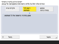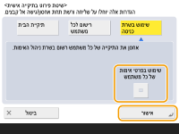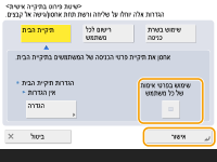 כדי להשתמש בשם משתמש וסיסמה נפרדים עבור התיקיה האישית, לחץ על<שימוש בפרטי אימות של כל משתמש> להוספת סימן ביקורת. הסר את סימן הביקורת כדי להשתמש באותו שם משתמש וסיסמה שהוזנו בעת הכניסה. אם נוסף סימן ביקורת לפריט זה, יש לרשום שם משתמש וסיסמה עבור כל משתמש.