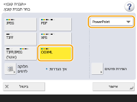 1 | בחר <OOXML> בחר <PowerPoint> מתוך הרשימה הנפתחת.![]() ![]() לשינוי השפה עבור OCR, לחץ על<הגדרת פרטים> <שינוי> בחר את השפה הרצויה לחץ על <אישור>. |