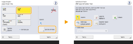 1 | בחר <PDF> לחץ על <הגדרת פרטים> <OCR (עם חיפוש טקסט)>.![]() |