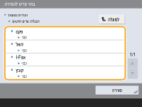 ניתן לבחור אם להציג מסך לאישור היעדים כאשר שולחים ליעדים הכוללים מספרי פקס. פעולה זו מסייעת למנוע שליחת פקס ליעד שגוי.