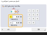 حدد طول الوجه <X> والوجه <Y>. اضغط على <X> أو <Y> لإدخال طول كل جانب باستخدام مفاتيح الأرقام.