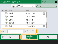 يمكن استخدام <تسجيل وجهة جديدة> و<تفاصيل/تحرير> و<حذف> في <تسجيل/تحرير> على شاشة <دليل العناوين (محلي)> لتسجيل وجهات جديدة، والتحقق من التفاصيل وتعديل/حذف وجهات. لاستخدام دليل العناوين البعيد، من الضروري تهيئة إعدادات جهاز الخادم. اضبط لفتح دليل العناوين البعيد خارجيًا على جهاز الخادم. |