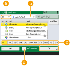 شاشة الميزات الأساسية للمسح الضوئيتحديد الوجهات من دفتر العناوين
