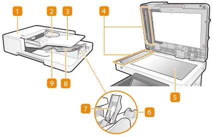 هنگام برداشتن اسناد اصلی که در تغذیهکننده گیر کردهاند، این درپوش را باز کنید.