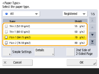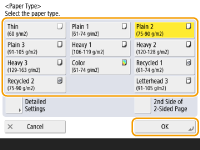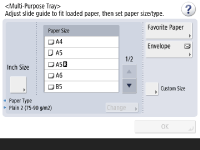اگر صفحه ای غیر از صفحه تعیین اندازه و نوع کاغذ نشان داده شداگر پیامی برای تنظیم کردن راهنمای کاغذ نشان داده شد، عرض راهنمای کاغذ را دوباره تنظیم کنید و <OK> را فشار دهید. |