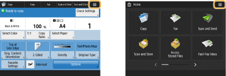 برای سفارشی کردن صفحه، مانند مرتبسازی دکمهها یا ایجاد کلید میانبر، را در صفحه <Home> و صفحه "ویژگیهای اصلی" فشار دهید. سفارشی کردن نمایشگر صفحه لمسی![]() می توانید تنظیمات مربوط به نمایش صفحه را تغییر دهید، مانند اینکه کدام صفحه بلافاصله بعد از روشن شدن دستگاه نشان داده شود، و اینکه پیام باقیمانده کاغذ و تونر نشان داده شود یا نه. <Display Settings> می توانید تنظیم کنید صفحه وقتی نشان داده شود که زمان مشخصی بدون فعالیت سپری شده باشد. <Function After Auto Reset> |
