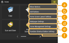 وقتی <Move Buttons>، <Edit Buttons>، <Home Screen Layout Settings>، یا <Wallpaper Settings> انتخاب میشود، بسته به تنظیمات <Allow Home Screen Customization for Common Use> و امتیازات کاربر واردشده به سیستم، ممکن است صفحهای برای انتخاب <Customize for Personal Use> یا <Customize for Common Use> نشان داده شود.
