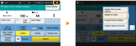 تنظیمات کپی را مشخص کنید. صفحه <Home>