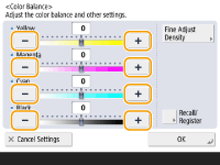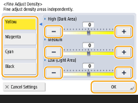 ![]() | غلظت رنگ زرد، قرمز، آبی و سیاه را به صورت جداگانه تنظیم کنید. |