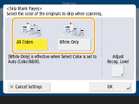 برای رد شدن از اسناد اصلی صرفنظر از رنگ آنها، <All Colors> را انتخاب کنید. برای رد شدن از اسناد اصلی که رنگ آنها فقط سفید است، <White Only> را انتخاب کنید.