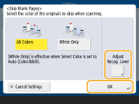 گزینه <Adjust Recog. Level>را فشار دهید، دقت را تنظیم کنید تا صفحه خالی را شناسایی کند و سپس <OK> را فشار دهید.