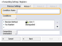 همچنین می توانید صفحه <Forwarding Settings> را با فشار دادن <Dest./Fwd. Settings>(صفحه <Home>) <Forwarding Settings> نمایش دهید. |
