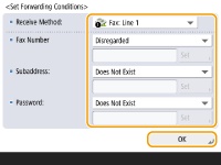 نمیتوانید <Receive Method> را پس از ثبت <Forwarding Settings> تغییر دهید. برای استفاده از تنظیمات هدایت با تغییر <Receive Method>، باید تنظیمات زیر را مجدداً ثبت کنید. |