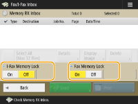 <Use I-Fax Memory Lock>)، و سپس روش زیر را برای مشخص کردن تنظیمات دنبال کنید تا اسناد ورودی بتوانند در حافظه دریافت شوند.