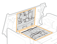 غلتکهای داخل درپوش تغذیهکننده را تمیز کنید.