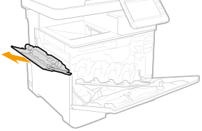 محفظه تونر ضایعاتی را به همراه پوشش سمت چپ باز کنید.