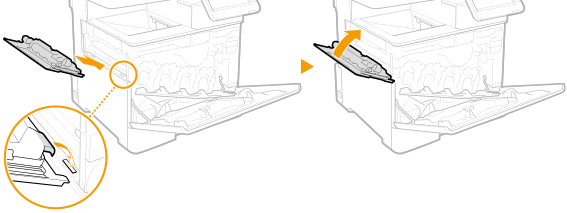 محفظه تونر ضایعاتی جدید را نصب کنید و درپوش چپ را ببندید.