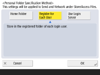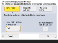 <OK> را فشار دهید. هر کاربری می تواند مکان پوشه های شخصی را مشخص کند.1 | <Home Folder> <Set> را فشار دهید.![]() |