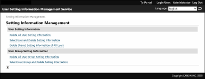 [Yes] کلیک کنید.1 | روی [Select User Group and Delete Setting Information] کلیک کنید. |