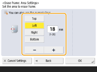 1 | <Erase Book Frame> را فشار دهید و <Original Size> را انتخاب کنید. ![]() اگر اندازه نمایش داده شده در <Original Size> متفاوت از اندازه کتاب بود، <Change> را برای انتخاب اندازه فشار دهید. تنها اندازه های سند اصلی نشان داده شده بر روی نمایشگر پانل لمسی قابل اسکن کردن هستند. |