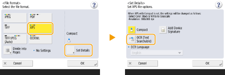 1 | <XPS> را انتخاب کنید <Set Details> <OCR (Text Searchable)> را فشار دهید.![]() |
