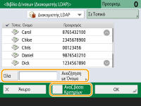 Το <Αποθ. Νέου Προορισμού>, <Λεπτομέρειες/Τροποποίηση> και <Διαγραφή> στο <Αποθήκευση/Τροποποίηση> στην οθόνη του <Βιβλίο Δ/νσεων (Τοπικό)> μπορεί να χρησιμοποιηθεί για την αποθήκευση νέων προορισμών, τον έλεγχο των λεπτομερειών και την επεξεργασία/διαγραφή προορισμών. Για να χρησιμοποιήσετε το απομακρυσμένο βιβλίο διευθύνσεων, πρέπει να διαμορφώσετε τις ρυθμίσεις του διακομιστή. Ρυθμίστε το άνοιγμα του απομακρυσμένου βιβλίου διευθύνσεων εξωτερικά στο διακομιστή. |