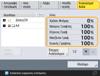 (ΈλεγχοςΚατάστ), εμφανίζεται η οθόνη Έλεγχος Κατάστασης, η οποία σας επιτρέπει να ελέγξετε το επίπεδο του γραφίτη ή άλλες ενδείξεις κατάστασης.