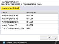 Έχετε τη δυνατότητα να ελέγξετε την υπολειπόμενη ποσότητα αναλώσιμων από το Remote UI (Απομακρυσμένο περιβάλλον εργασίας). Έλεγχος της κατάστασης της συσκευής |