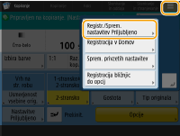 Pritisnite <Kopiranje> in določite nastavitve, ki jih želite registrirati.