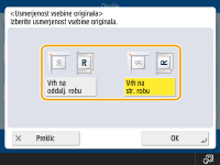 | | Za izvirnike, naložene na kopirno steklo ali v podajalnik, lahko izberete vodoravno ali navpično usmerjenost. |