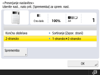 Nastavite <Tip originala> in <Format konč. obdelave> ter pritisnite <OK>.