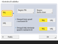 2 | Pritisnite <Registracija>. ![]() Urejanje nastavitev ID-jev oddelkov Izberite ID oddelka, ki ga želite urediti, in pritisnite <Sprememba>, da se odpre zaslon za urejanje. Brisanje nastavitev ID-jev oddelkov Izberite ID oddelka, ki ga želite izbrisati, in pritisnite <Brisanje> <Da>. |