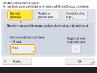 (Nastavit./Registr.) <Nastavitve funkcije> <Shrani/Dostop v datoteke> <Nastavitve omrežja> <Metoda izbira osebne mape>