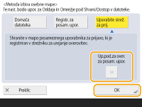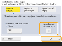 Če želite za osebno mapo uporabiti ločena uporabniško ime in geslo, pritisnite <Up.pod.za over. za posam. upor.>, da dodate kljukico. Odstranite kljukico, če želite uporabiti uporabniško ime in geslo, ki sta vnesena ob prijavi. Če je temu elementu dodana kljukica, je treba za vsakega posameznika registrirati uporabniško ime in geslo.