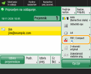 Ta način lahko uporabljate samo, če je kot prejemnik izbran naslov e-pošte ali datotečni strežnik.