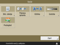 Zaslon prikažete tako, da na zaslonu z nastavitvami tiskanja v razdelku <Dostop v shr. datoteke> pritisnete <Opcije>. Na njem lahko nastavitve konfigurirate za jasnejše tiskanje dokumentov. Razpoložljive nastavitve so lahko drugačne in so odvisne od oblike datoteke, ki jo želite natisniti.