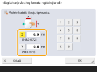 Navedite duljinu strane <X> i strane <Y>. Pritisnite <X> ili <Y> kako biste putem numeričkih tipki unijeli duljinu svake stranice.