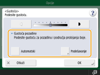 ![]() | Možete podesiti gustoću cijelog izvornika. Na primjer, povećanje gustoće omogućava lako čitanje slabo vidljivih znakova pisanih olovkom. Podešavanje gustoće cijelog izvornika |