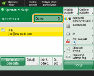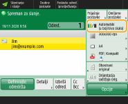 Zaslon s osnovnim značajkama skeniranjaNavođenje odredišta iz adresara