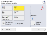 Ako odaberete <PDF>, <XPS> ili <OOXML>, možete odrediti razne dodatne postavke.