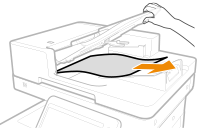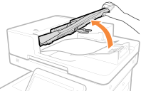 | Ako se izvornik zaglavio, pažljivo ga izvucite u smjeru strelice. Ako ne možete uklonite zaglavljeni izvornik nastavite sa sljedećim korakom bez nasilnog uklanjanja. |
