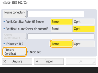 <Verif. Certificat Autentif. Server>Setaţi această setare la <Pornit> când verificaţi certificatele de server trimise de la un server de autentificare.