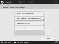 Pulse <Accesibilidad> y seleccione la opción que desee configurar.