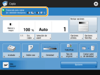 Muestra el estado de configuración, como la escala de copia, el tamaño del papel y el número de copias. Recuerde confirmar las opciones para copiar correctamente. Para cambiar las opciones, pulse el botón bajo la sección visualizada.