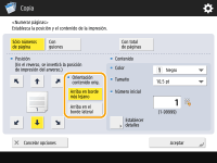 Si establece <Configuración opc. numerar juegos de copias> en <Sí>, la configuración que puede especificar cambia de la siguiente manera. <Configuración opc. numerar juegos de copias>