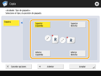 Pulse <Opciones> en la pantalla de Funciones básicas de copia. Pantalla de funciones básicas de copia